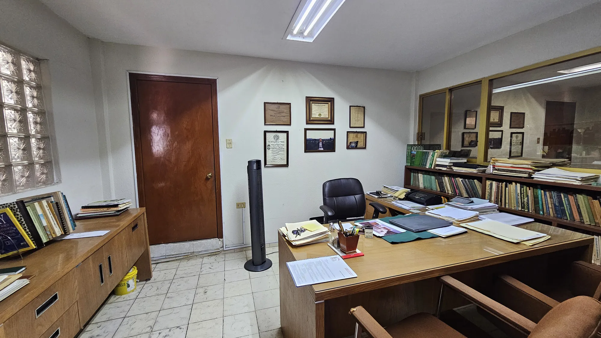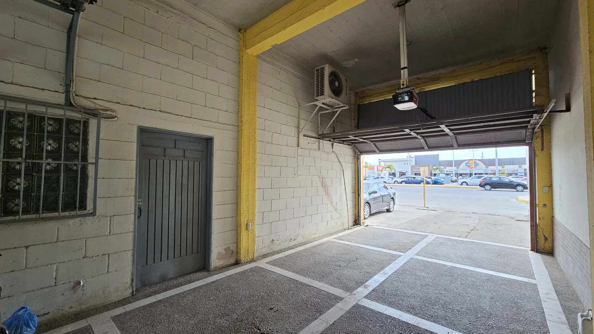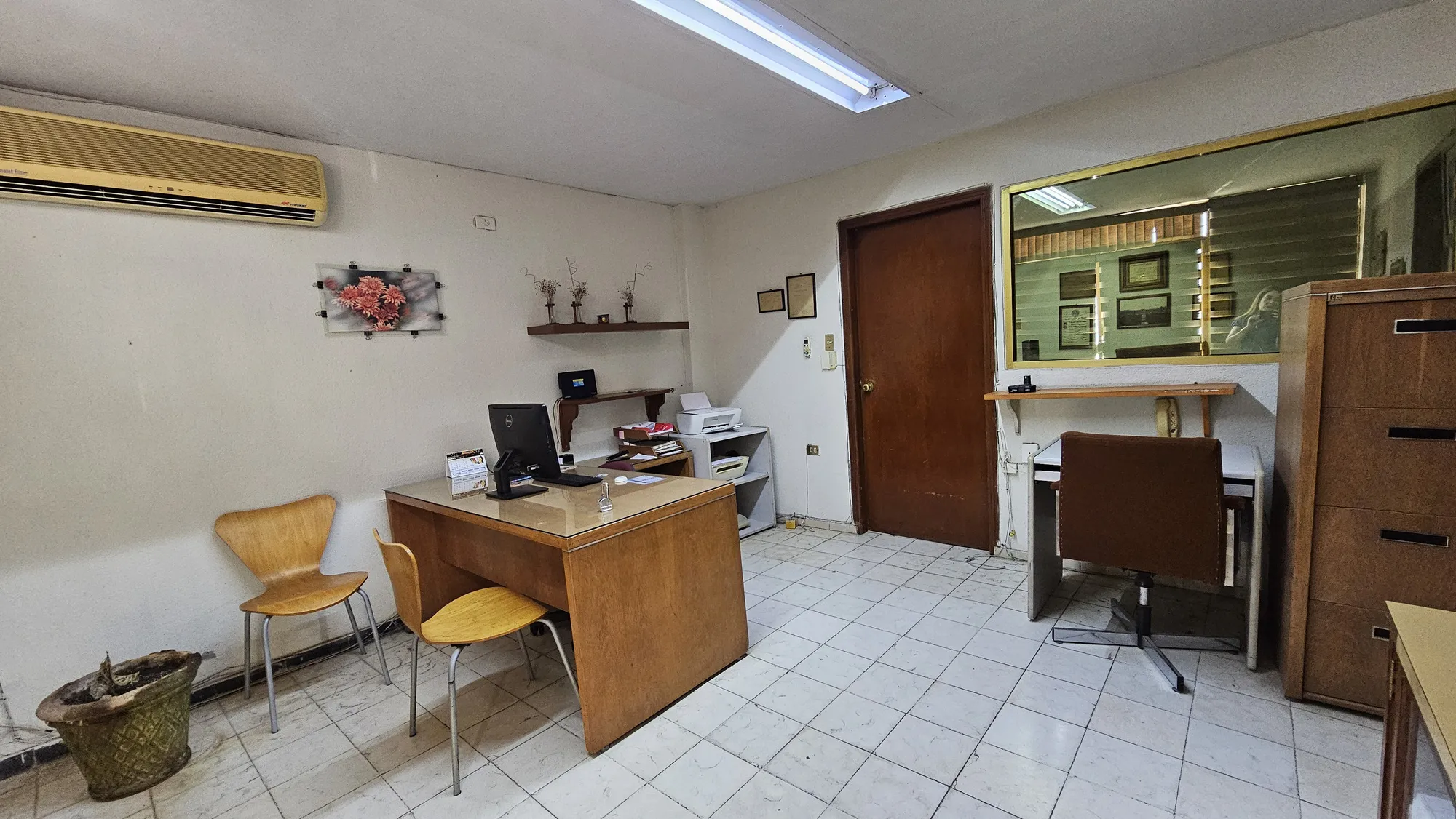 dos autos en batería con portón eléctrico, área de recepción, oficina privada